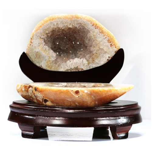 此精美的聚寶盆是由天然瑪瑙/水晶原礦精制而成,洞形好,瑪瑙層厚,內部水晶品質完美。 聚寶盆為圓形或橢圓形,中空,在其內壁布滿了很多水晶,向著球形的中心方向生長。是大自然億萬年來的結晶,孕育了日月精華。將球形切開后,便成為人們用來擺設的,或作為風水用途的聚寶盆。